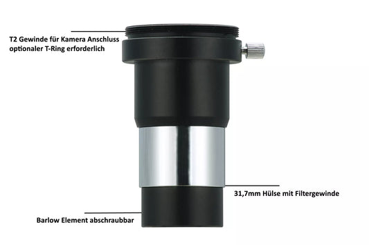Barlow-Linse 2x mit T2-Anschluss für Fotografie und Beobachtung - Vixen