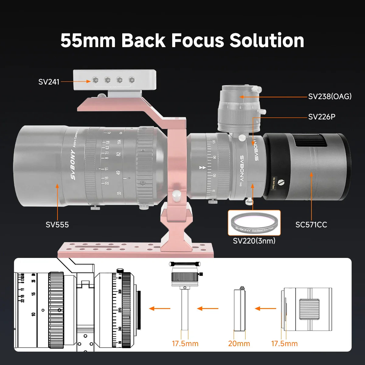 Découvrez la caméra refroidie couleur SVBONY SC571CC conçue pour l’imagerie du ciel profond avec capteur APS-C haute résolution et système de refroidissement puissant pour des clichés nets et à faible bruit.