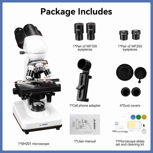 Microscope Binoculaire Composé SM201 40x-2500x avec Adaptateur Smartphone - SVBONY