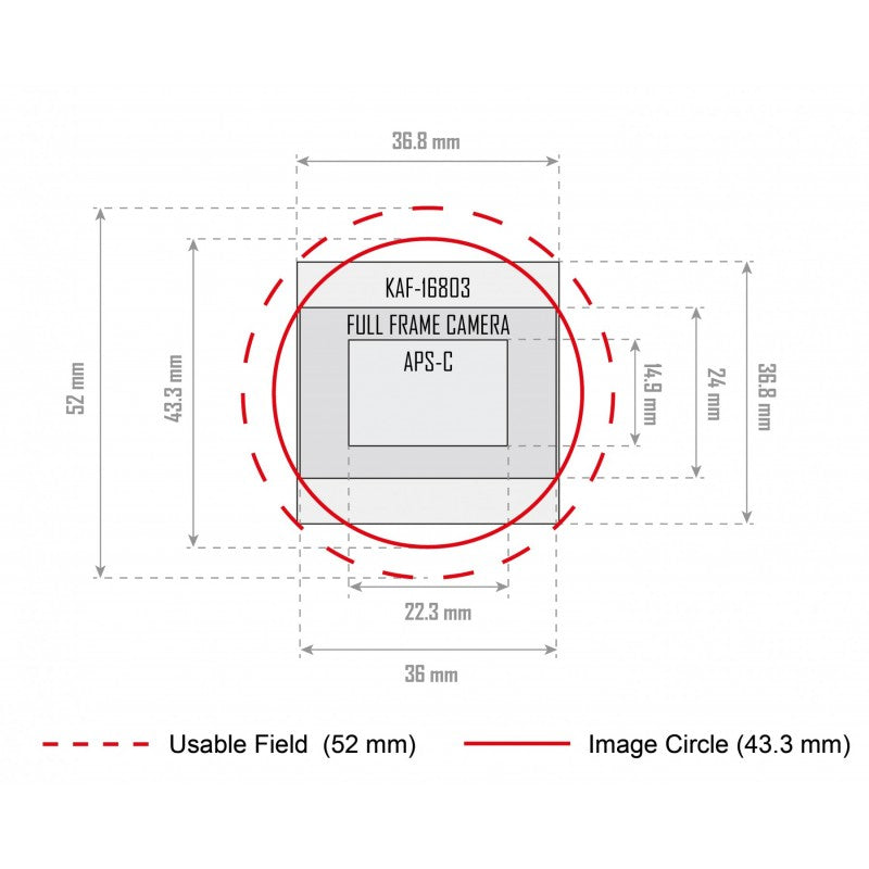 - Luminosité hors axe: 83 % à 21 mm hors axe
