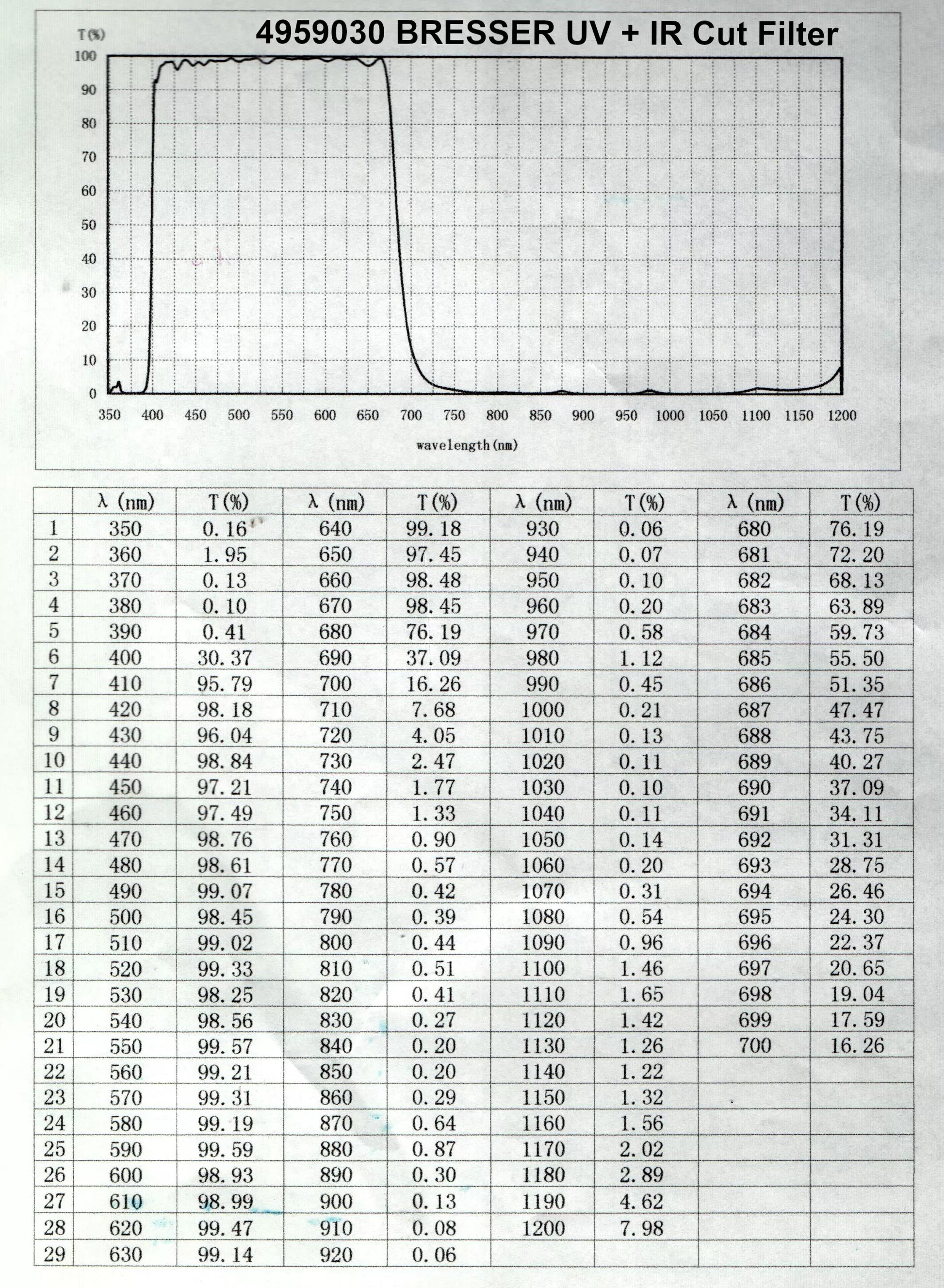 - Filtre de coupure UV + IR (1 pièce)