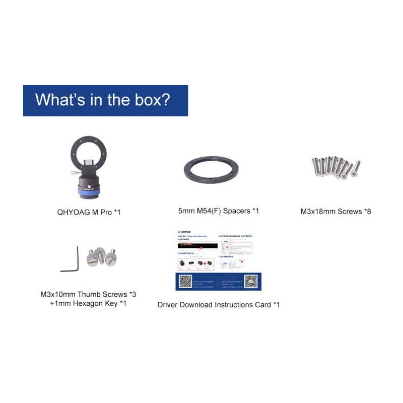 - Six vis de 3 mm pour l'attache des adaptateurs ou du QHYCFW3