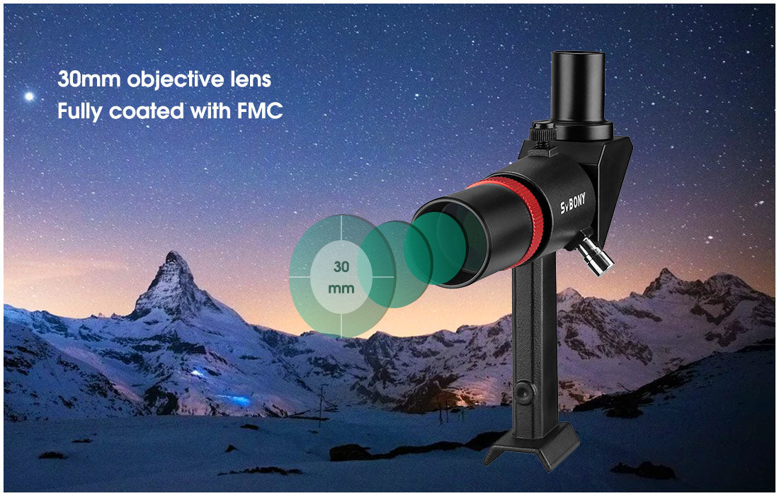 Le viseur SV182 6x30 de SVBONY est l'accessoire idéal pour améliorer votre expérience d'observation astronomique. Doté d'une ouverture de 30 mm et d'une focale de 120 mm, il offre une capacité accrue de collecte de lumière pour repérer facilement des objets célestes faiblement lumineux. Grâce à son angle d'observation à 90° et son image redressée, vous pouvez observer confortablement sans torsion du cou. Le réticule en croix facilite le centrage précis de vos cibles, tandis que le traitement FMC garantit des images nettes et lumineuses.