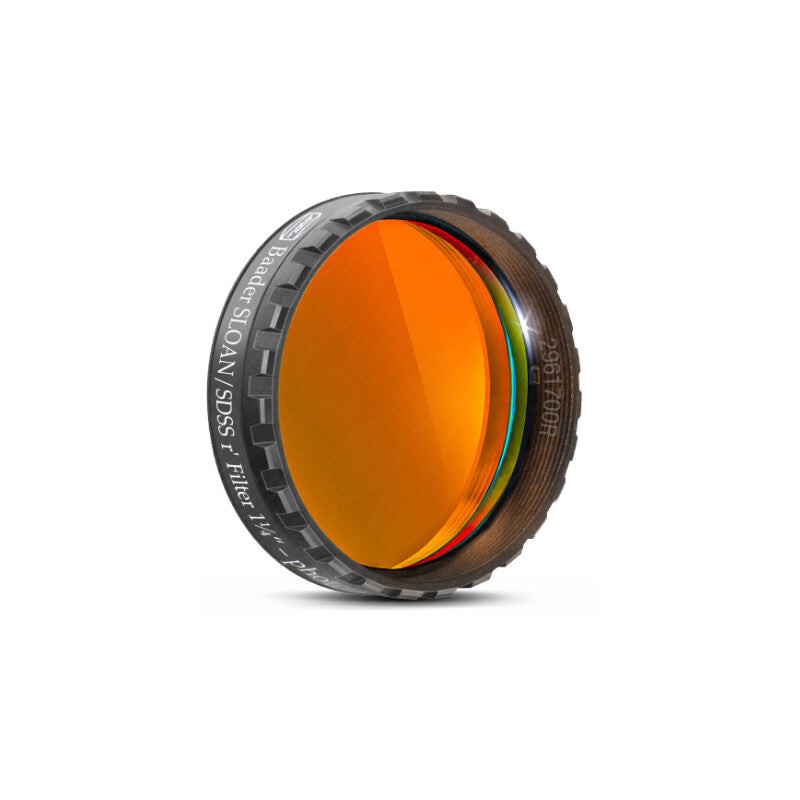 Le filtre photométrique SLOAN/SDSS r' de Baader est conçu pour la mesure précise des bandes spectrales en astronomie. D'une épaisseur de 2 mm, ce filtre passe-bande est optimisé pour les observations et la photographie des nébuleuses et des galaxies avec une longueur d'onde centrale adaptée à la bande r'.