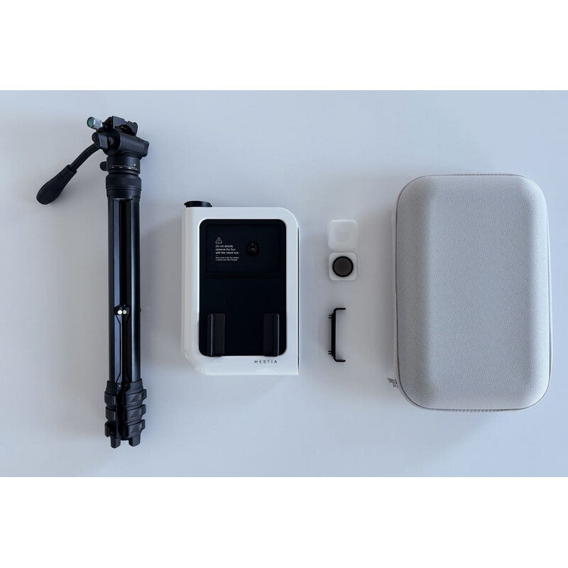 L'Ultimate Pack se compose du télescope intelligent Hestia, d'un filtre solaire, d'une housse de protection rigide, d'un pare-soleil, d'un trépied et d'un viseur solaire. Hestia exploite la puissance de votre smartphone et vous permet de capturer l'éclat du soleil, la beauté envoûtante de la lune ou les profondeurs captivantes de l'univers - sans réglages complexes ni connaissances approfondies en astronomie !