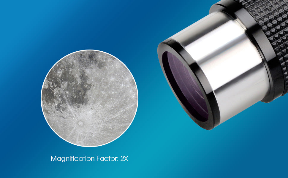 - Verdubbelt de vergroting van uw oculairs voor een gedetailleerder zicht op de planeten en het maanoppervlak