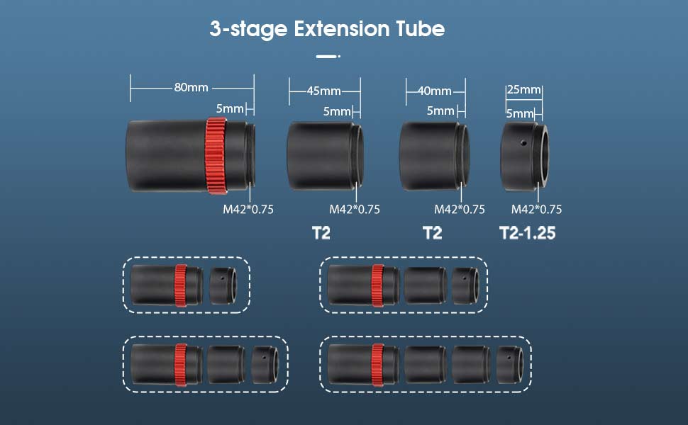 - Extension : deux tubes d'extension T2 pour assistance à la focalisation