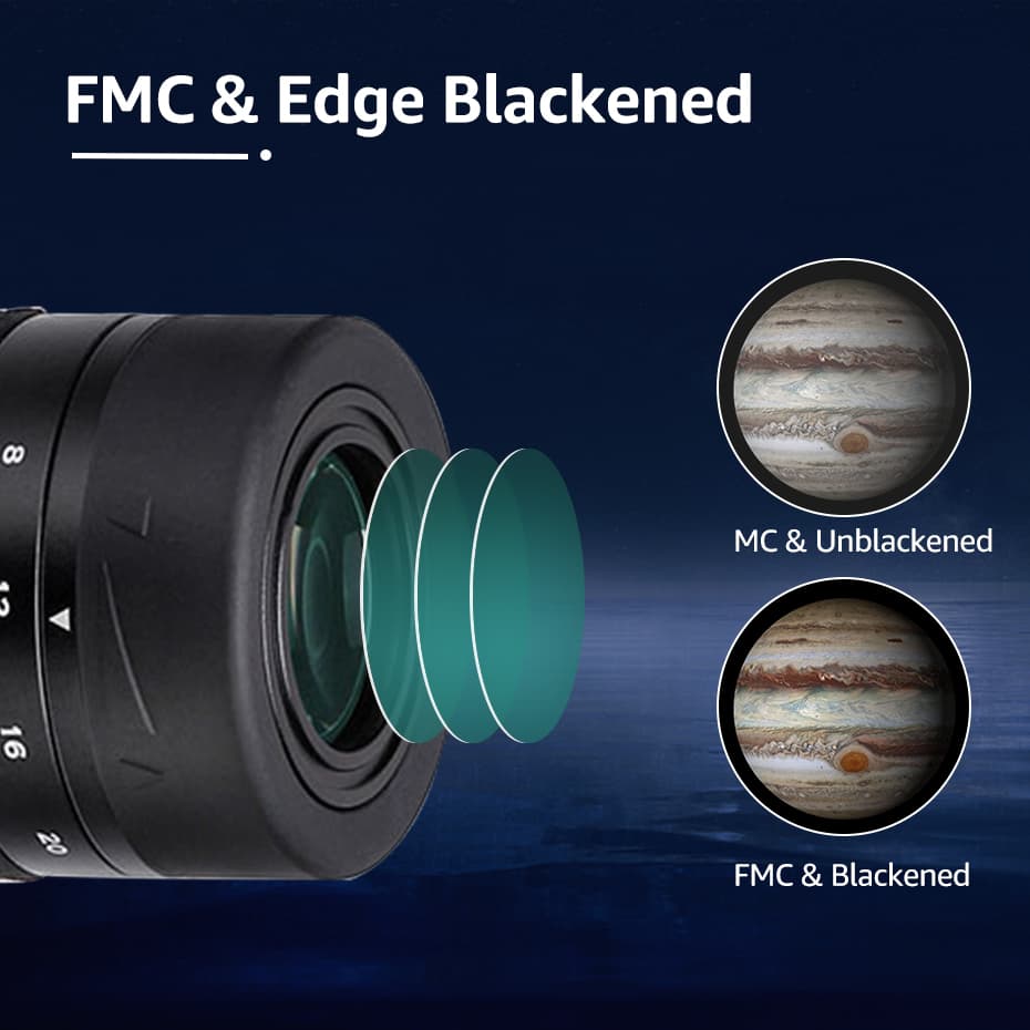 - Lensafwerking: volledig multi-coated voor hoge contrast
