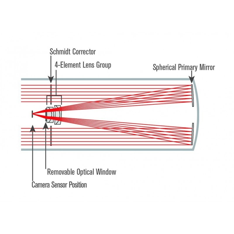 Conçu uniquement pour l'imagerie, le RASA 8'' ne peut pas être utilisé visuellement. Le plan focal principal est situé à l'avant du système optique et ne peut donc pas accueillir d’oculaire.