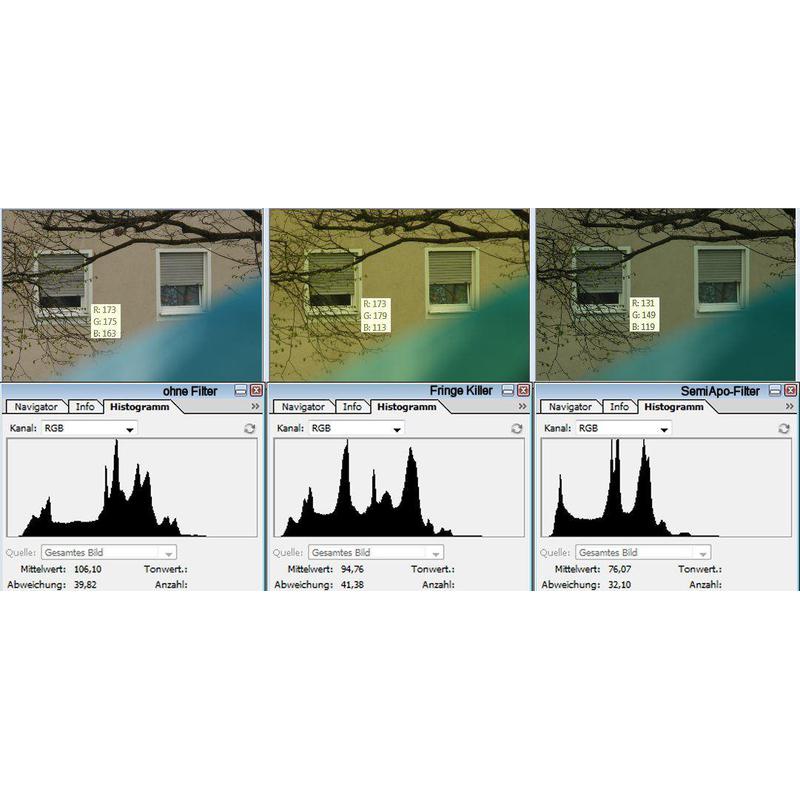 Le filtre Fringe Killer 2'' planoptique poli de Baader améliore significativement la visibilité des détails les plus fins sur la surface de la Lune et des planètes en réduisant les franges de couleur gênantes. Ce filtre bloque la lumière hors foyer dans la partie rouge (infrarouge) du spectre et supprime plus de 50 % des faux signaux lumineux indésirables dans le spectre bleu, sans altérer la perception des couleurs de l'image.