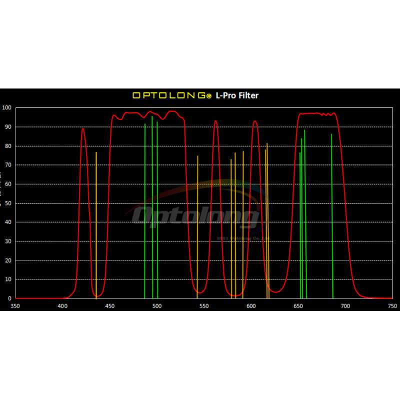 - Transmission sélective des lignes d'émission des objets Deep-Sky (H-Alpha, O-III, N-II, H-Beta, S-II, etc.) tout en supprimant les émissions de pollution lumineuse telles que Hg et Na.
