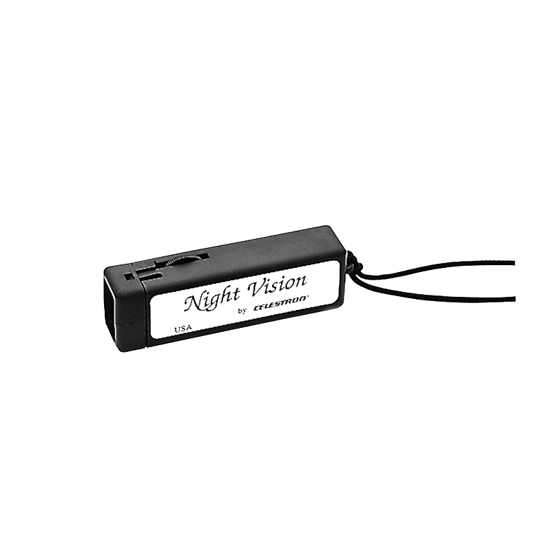 La lampe de poche Celestron Night Vision utilise deux LED pour fournir un éclairage rouge variable. Utilisez la molette pour régler la lumière selon vos besoins. La forme carrée de la lampe de poche l'empêche de rouler de votre table d'observation au sol. Une lanière est attachée pour que vous puissiez le porter autour de votre cou. La lampe de poche Night Vision est alimentée par une pile 9V (incluse).