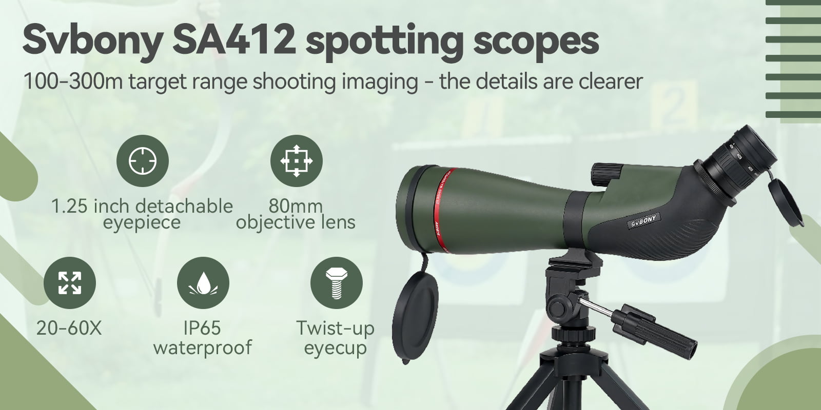Améliorez vos observations avec la jumelle d'observation SA412 de Svbony. Dotée d'une lentille objective de 80mm et d'une optique porro prism, cette jumelle offre une plage de grossissement variable de 20-60x pour des images claires à une distance de 100-300 mètres.
