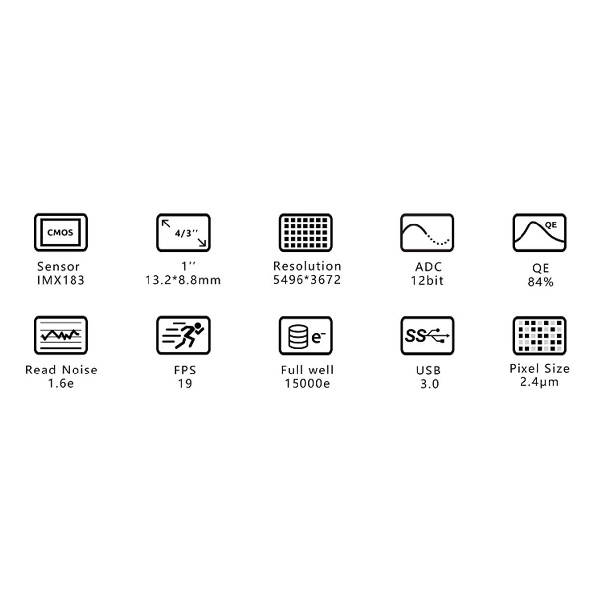- Capteur CMOS Sony IMX183CLK-J/CQJ-J de 1"