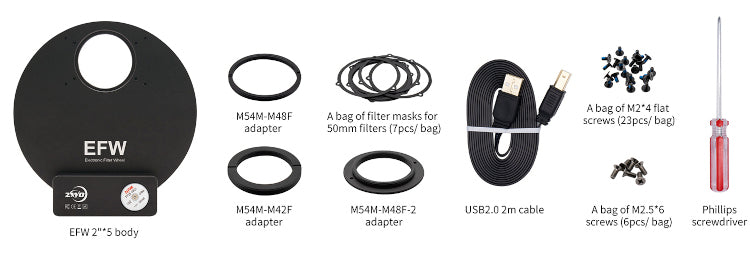 - Roue à filtres motorisée ZWO EFW 5x50.8mm