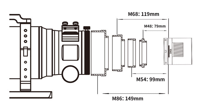 - Inclut quatre adaptateurs photo (M68x1, M54x0.75, M54x0.75 femelle, M48x0.75 mâle)