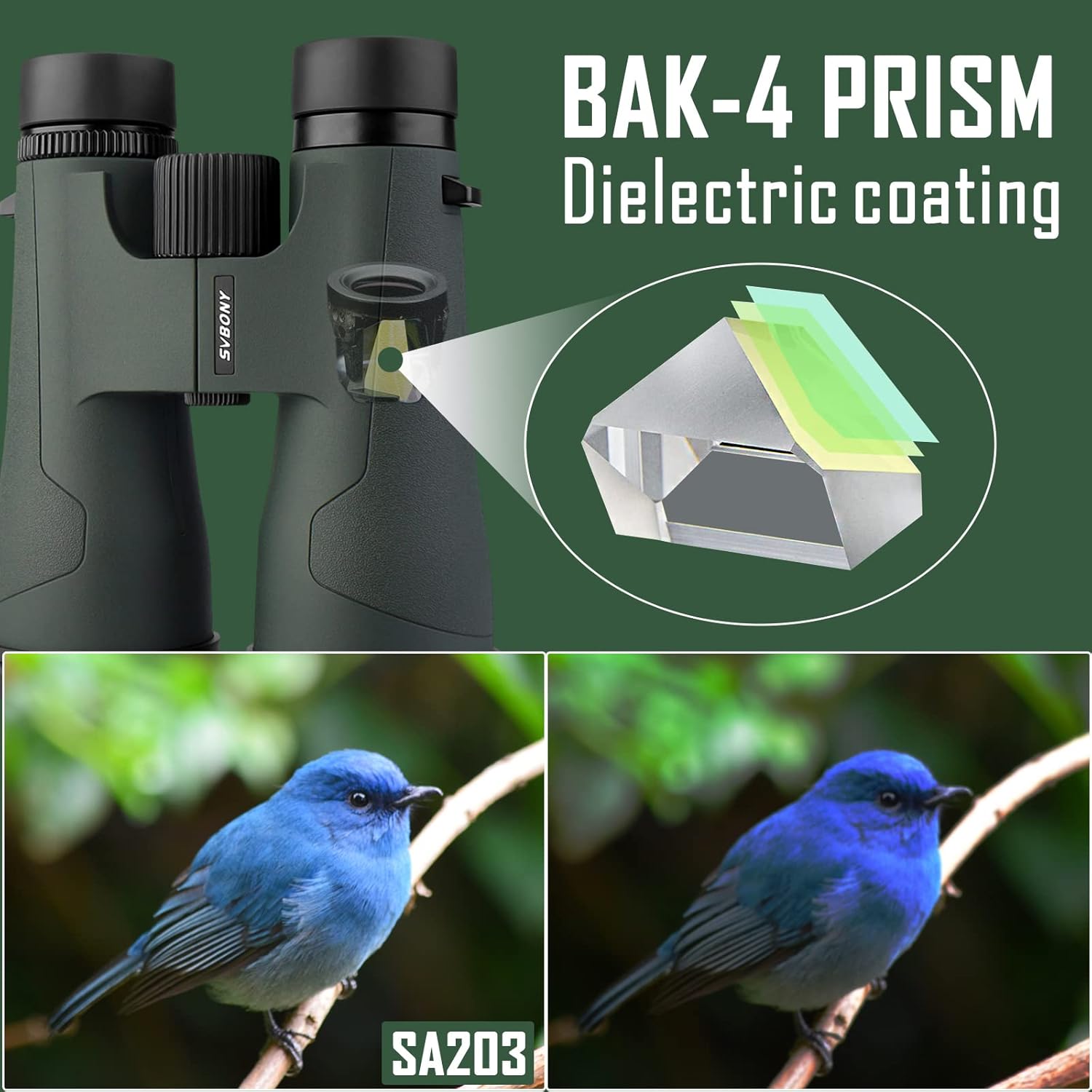 Jumelles SA203 12x50 pour Observation à Longue Portée avec Prismes BAK4 et Revêtement Multicouche