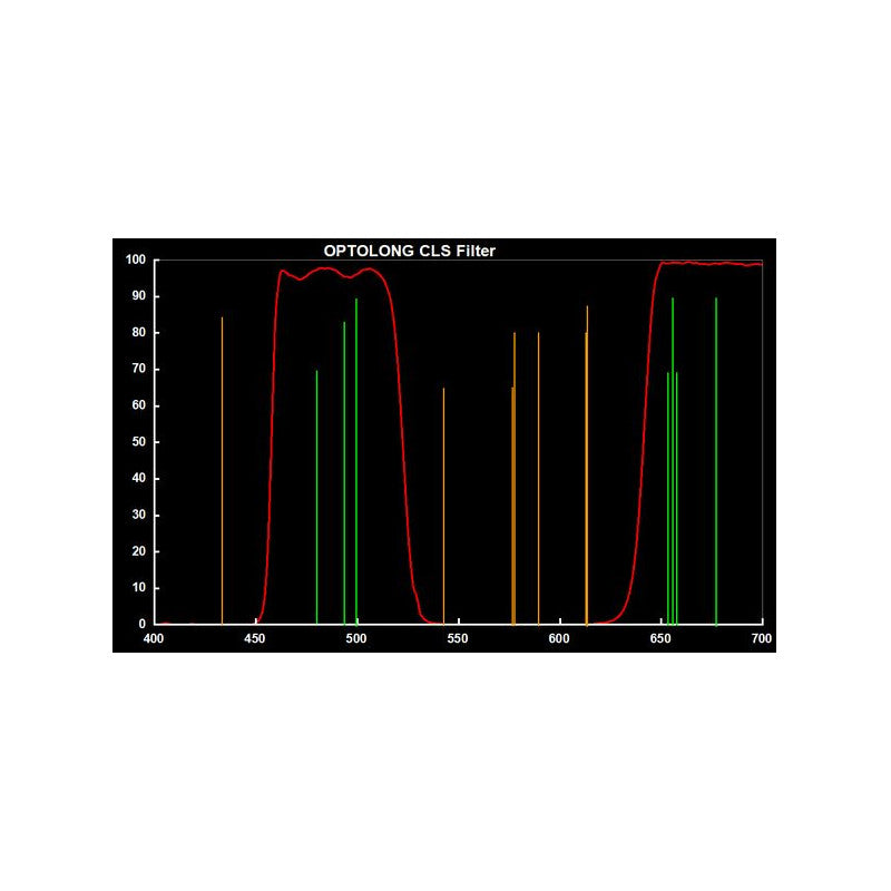 Le filtre CLS Clip (City Light Suppression) Optolong est conçu pour améliorer le contraste des objets du ciel profond en réduisant sélectivement la lumière des sources de pollution lumineuse. Il préserve les raies d'émission utilisées en astronomie pour l'observation et l'astrophotographie : OIII (496 et 500 nm), Hβ (486 nm), NII (654 et 658 nm), Hα (656 nm) et SII (672 nm).