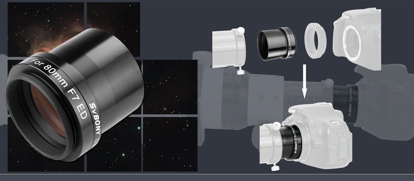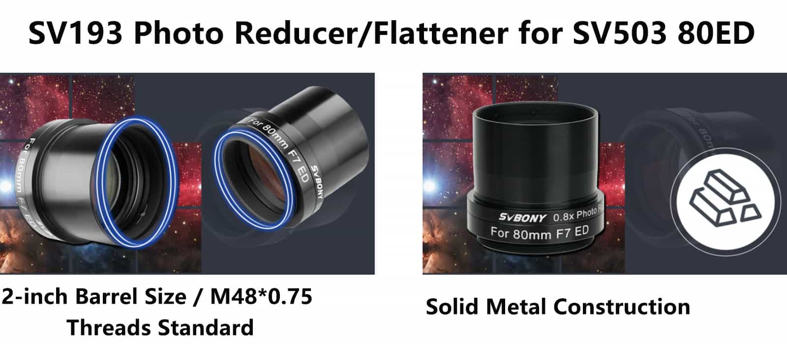 - Compatible avec les télescopes SVBONY SV503 80ED et 102ED.